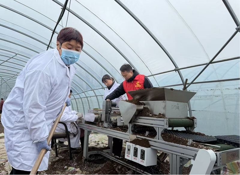 工作人員進行苗盤整理。張國偉攝