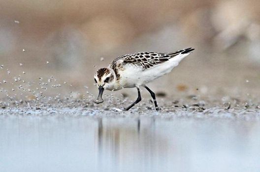 勺嘴鹬的嘴基平扁,觅食时用嘴在水中或烂泥中可像扫帚一样左右来回扫。
