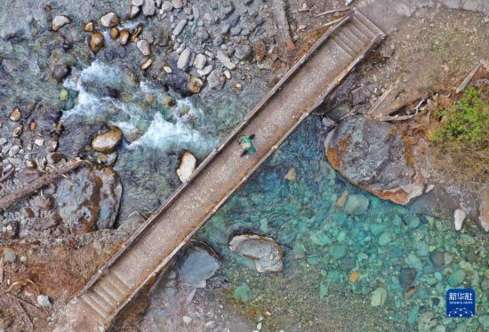 3月23日,何晓安在卧龙自然保护区内寻找鸟类(无人机照片)。