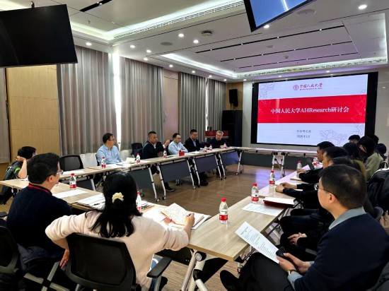中国人民大学科研处人员研讨人工智能如何赋能科研工作。新华社发