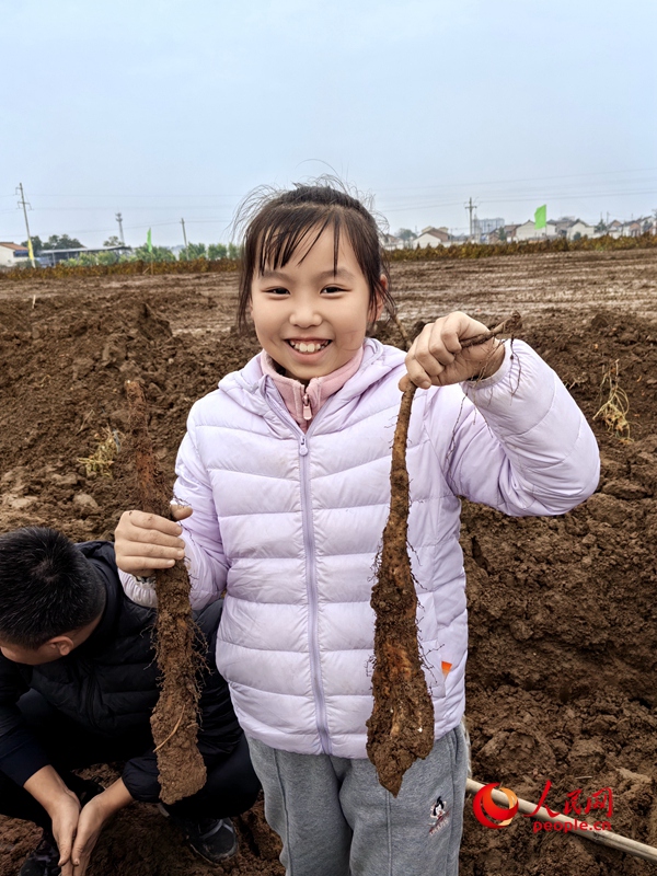 小朋友收获山药后的喜悦。人民网 记者辛静摄